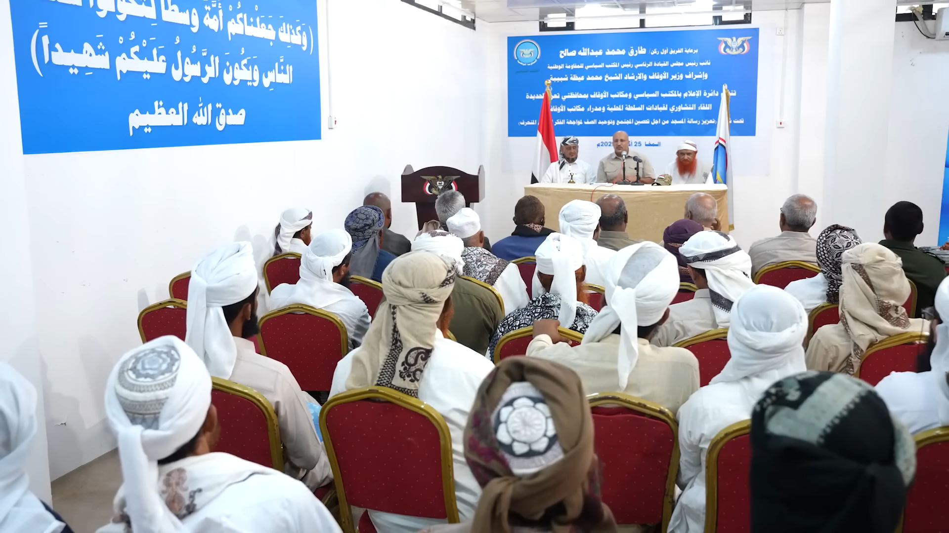جاءت هذه المواقف خلال اللقاء التشاوري للسلطة المحلية ومكاتب الأوقاف بمحافظتي تعز والحديدة، المنعقد في مدينة المخا برعاية الفريق الركن طارق صالح، عضو مجلس القيادة الرئاسي، قائد المقاومة الوطنية ورئيس مكتبها السياسي، وبإشراف وزير الأوقاف والإرشاد الدكتور محمد عيضة شبيبة، وحضور قيادات من السلطات المحلية ومكاتب الأوقاف والخطباء والمرشدين والدعاة.